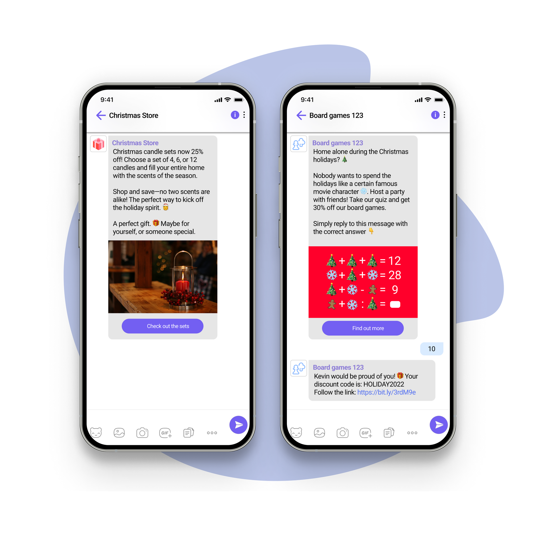 Over the past year, Viber has emerged as one of the more popular conversational marketing channels, yet we often forget that it offers diverse opportunities to incorporate visual and interactive elements that grab attention. Festive cards with website links, short videos featuring gift ideas or eye-catching images with exclusive offers will create the right holiday mood. In addition, you can include interactive buttons such as "Shop Now" or "Redeem Discount" in your messages that allow recipients to quickly take the next step. This simplifies the process and increases the chances of conversion.